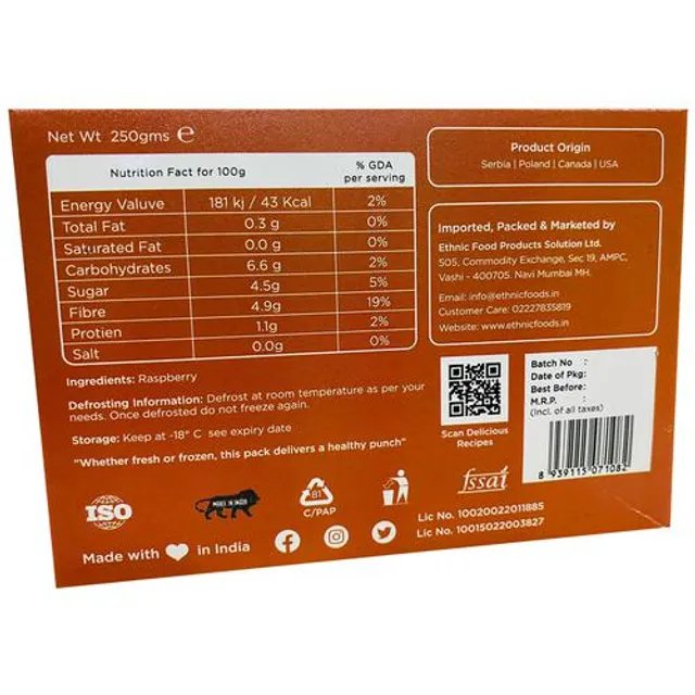 Manufactured & Marketed by: MASTER FRUITS D.O.O., Velikoremetska 6, (Vojislava Iveti?a bb), 11211 Bor?a, Belgrade, Sebia. & Ethnic Food Prodcuts Solution Ltd, 505, Commodity Exchange, Sector – 19, Vashi. Navi Mumbai – 400705.